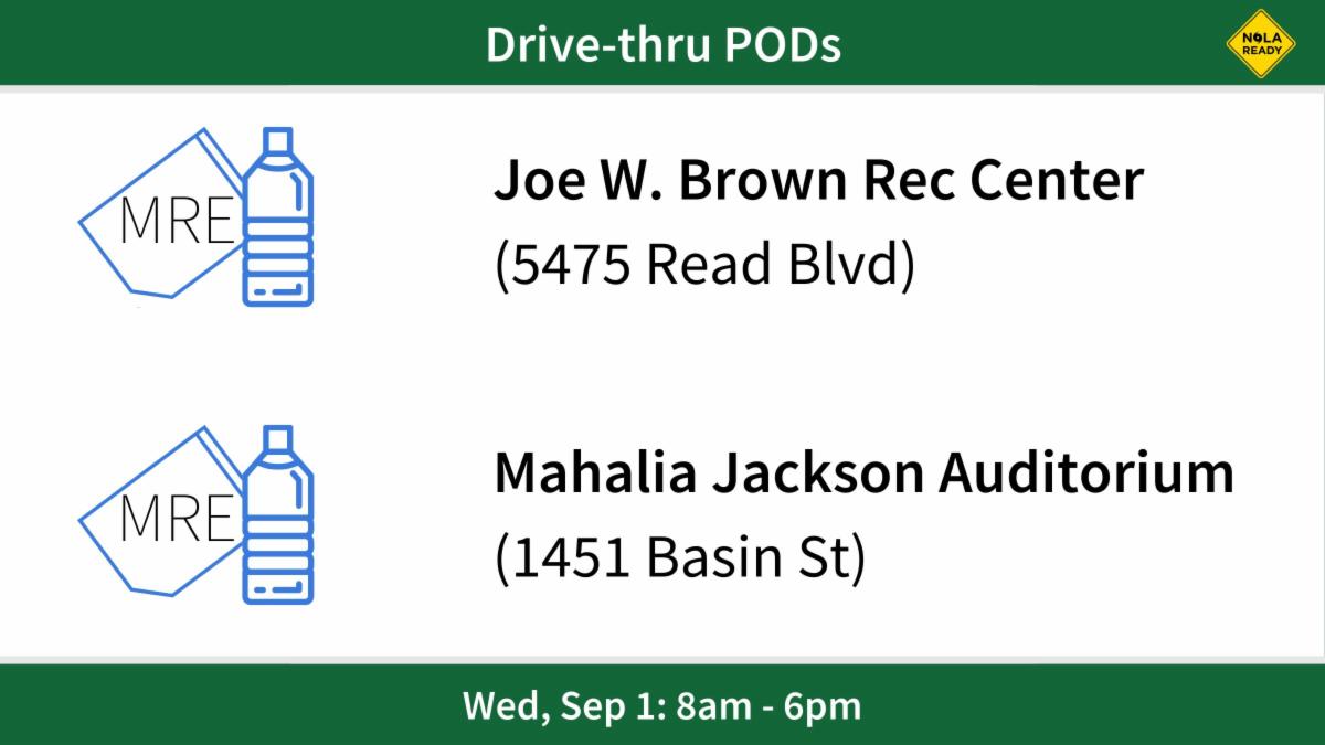 From NOLAReady: National Guard MRE and Water Distribution and Cooling Station Locations